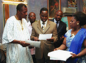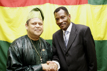 Fifi Rafiatou et son Producteur-Manager Gladstone Koffivi SAH reçus par Son Excellence Mr Tchao SOTOU BERE Ambassadeur du Togo en France pour la sortie de son nouvel album LE DEFI et du single offert aux Chefs d'Etat et de Gouvernement ainsi qu'aux Représentations diplomatiques de la planète.